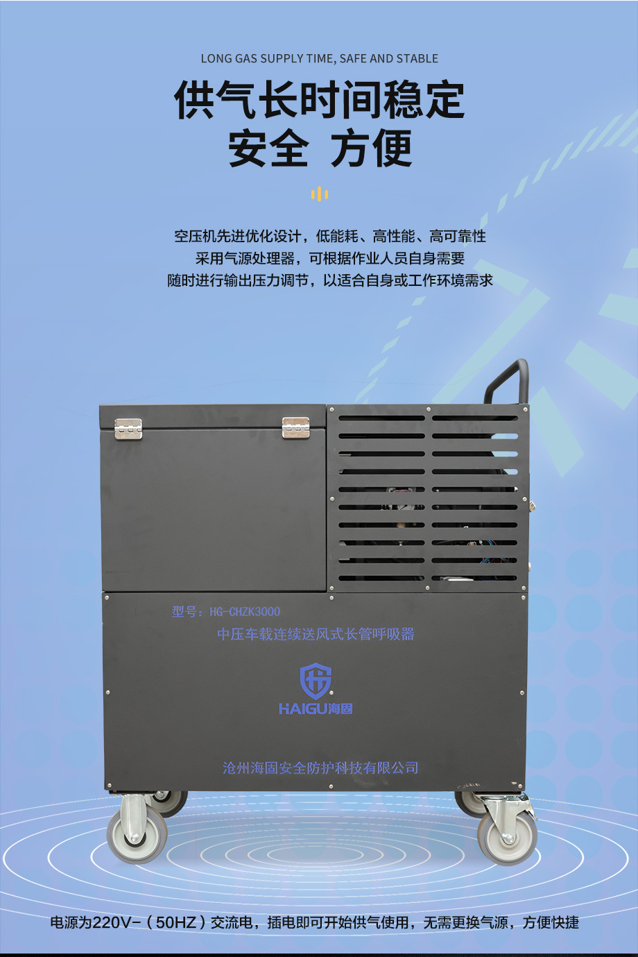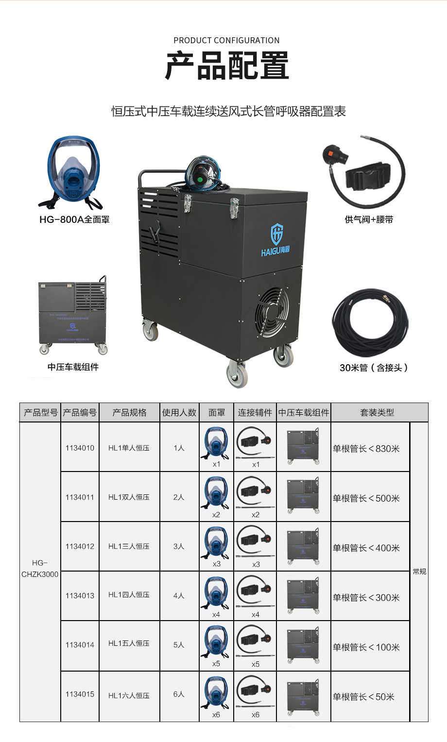 海固HG-CHZK3000恒压式中压车载连续送风式长管呼吸器
